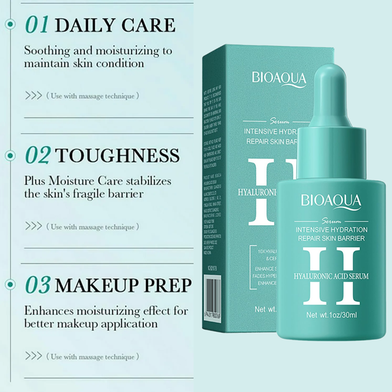 The BIOAQUA Intensive Hydrating Repair Skin Barrier Hyaluronic Acid Serum is a deeply moisturizing serum designed to strengthen the skin barrier and deliver long-lasting hydration. Formulated with hyaluronic acid, this serum penetrates deep into the skin, replenishing moisture levels and restoring skin elasticity. It helps repair and protect the skin barrier, making it more resilient against environmental stressors. Lightweight and fast-absorbing, this serum leaves the skin feeling soft, smooth, and plump, making it ideal for all skin types, including sensitive and dry skin.