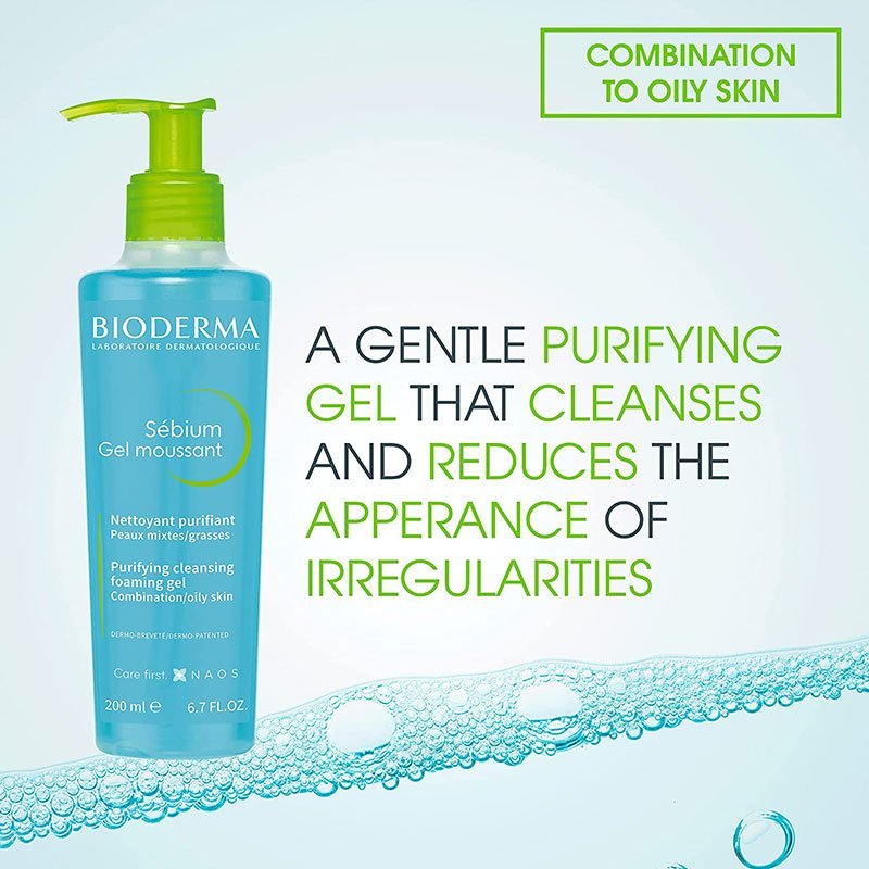 Bioderma Sébium Gel Moussant is suitable for cleansing combinations to oily skin and has a gentle but deep purifying action. This foaming gel eliminates excess sebum and purifies the epidermis. Its ultra-gentle formula respects the cutaneous balance. Non-drying, soap-free. Non-comedogenic. It has an excellent tolerance on the facial skin, including the eye contour area.