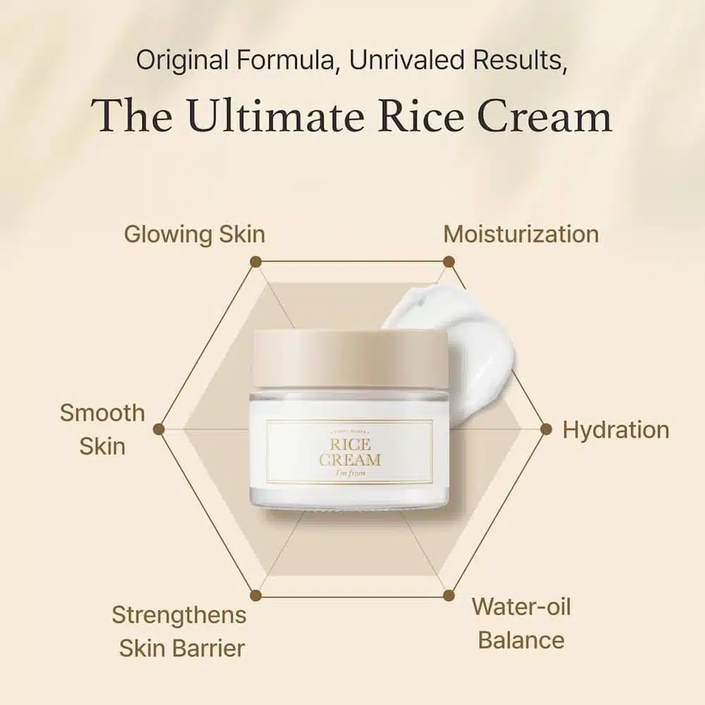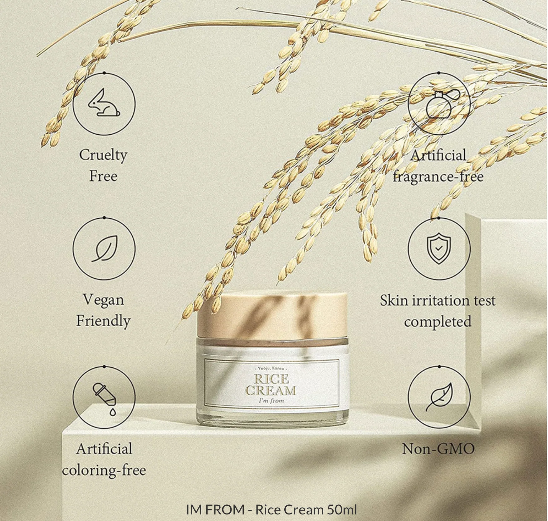 I’M FROM Rice Cream contains Rice Bran Extracts which is packed with ceramides and fatty acids that nourish the skin. The Rice Extract has been distilled using I’m From’s technology to improve complexion, control sebum production, strengthen the skin barrier and repairing it from external damage. Other ingredients in the formula such as Shea Butter, Hydrolyzed Hyaluronic Acid, Rice Bran Oil and Adenosine contain antioxidants, and are rich in vitamins and minerals.