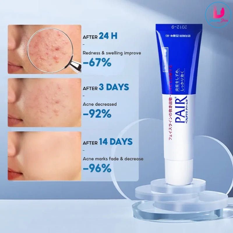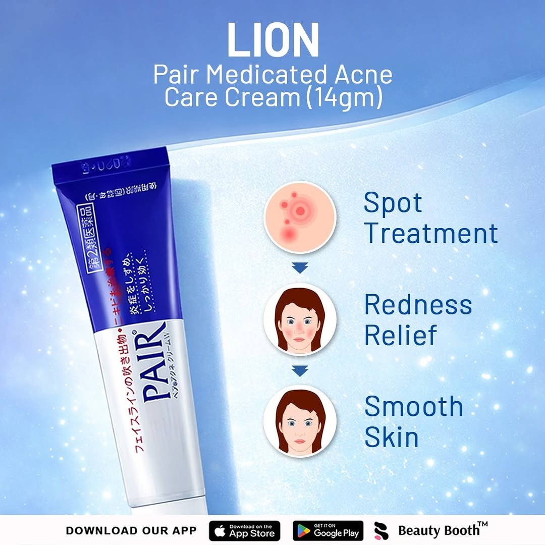 The Lion Pair Medicated Acne Care Cream is a topical Japanese acne treatment designed to address pimples by reducing inflammation and fighting bacteria at the source. The cream is formulated to be non-sticky and absorb quickly into the skin.