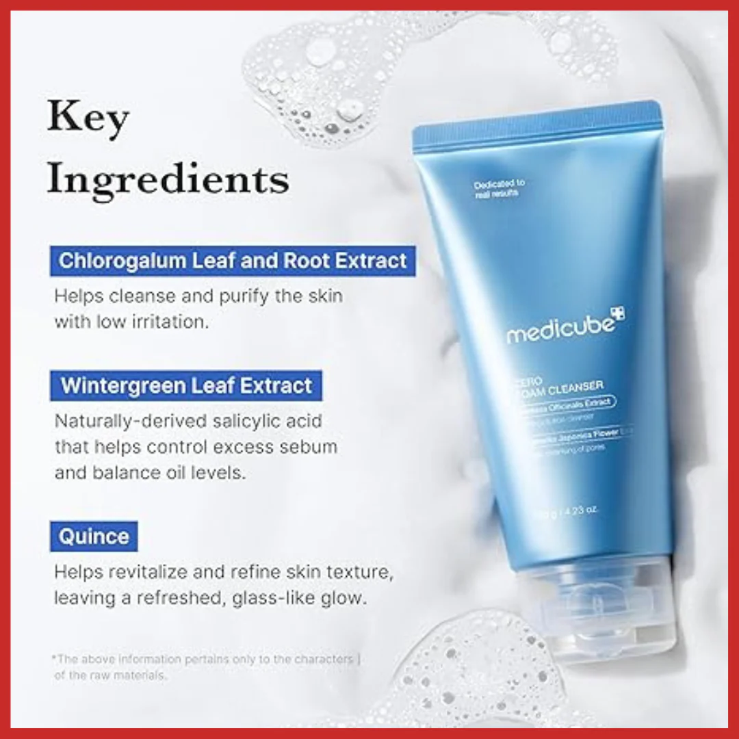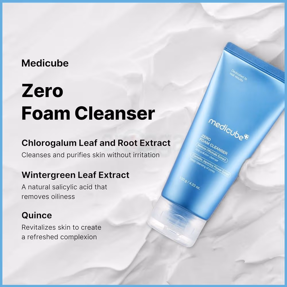 The Medicube Zero Foam Cleanser is a gentle Korean skincare product designed for daily use to deeply cleanse pores and control excess sebum without stripping the skin. It is suitable for most skin types, including sensitive, oily, combination, and acne-prone skin.