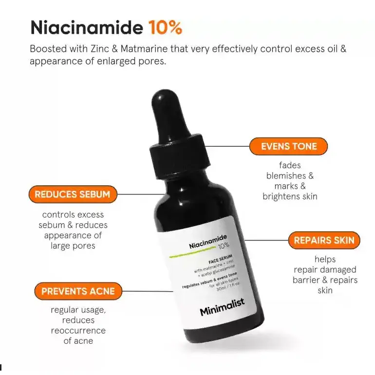 Unique blend of highly effective ingredients - Niacinamide, Matmarine, Zinc and Acetyl GlucosaminePure 10% Niacinamide is clinically proven to promote protein synthesis, reduce melanin concentration & improve skin complexion in 2 weeksMatmarine is one of the biotechnological extract derive from a marine microorganism, helps regulate oiliness regardless of skin type and reduces sebum and appearance of pores, support hydrationLightweight serum coupled with Zinc that balances sebum activity and reduces inflammation, leaving smooth textured skin with no sticky residue