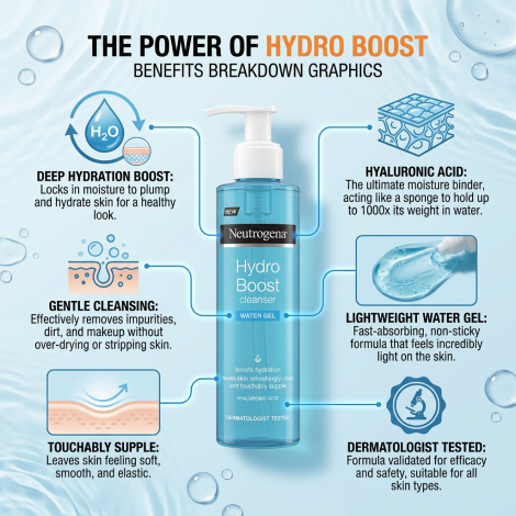 NEUTROGENA® Hydro Boost® Water Gel Cleanser is an innovative cleanser that activates with water to remove impurities whilst providing skin with an essential boost of hydration. The skin is refreshingly clean and touchably supple every time you cleanse. Dermatologically tested and suitable for sensitive skin.