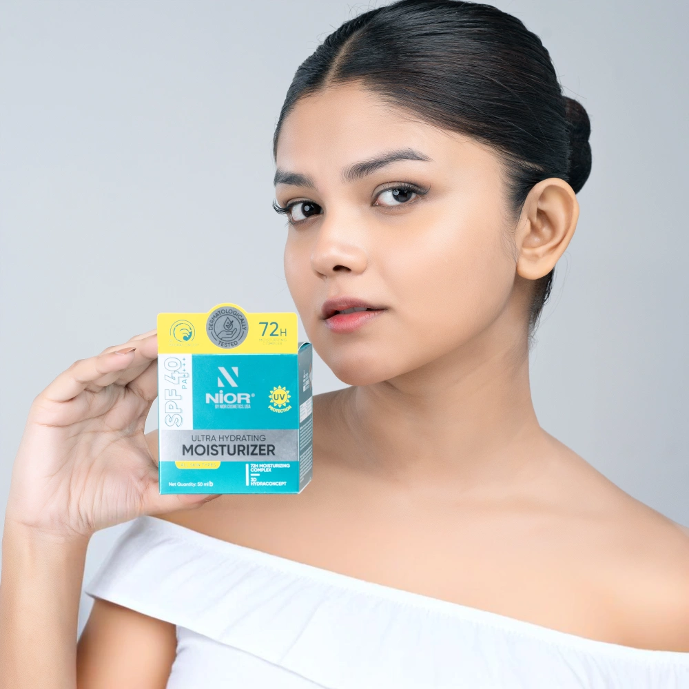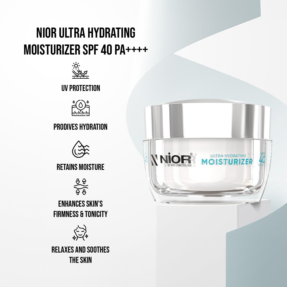 Nior Ultra Hydrating Moisturizer provides comprehensive care for the skin, offering hydration, nourishment, radiance, and protection against harmful sun rays. Enriched with the power of Hyaluronic Acid, our hydrating moisturizer moisturizes the skin, providing deep hydration that lasts. The hydrating benefits of Sodium PCA act like a magnet, attracting and retaining moisture, leaving the skin feeling refreshed and rejuvenated throughout the day. Tocopherol plays a vital role in maintaining moisture levels, resulting in a luminous and healthy complexion.