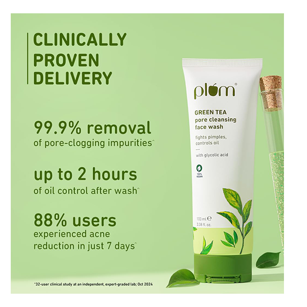 The Plum Green Tea Pore Cleansing Face Wash is a gentle yet effective cleanser designed for oily and acne-prone skin. Infused with the goodness of green tea extract, this face wash helps control excess oil, unclog pores, and prevent breakouts. The soft cellulose beads provide mild exfoliation, leaving the skin fresh, clean, and smooth without over-drying.