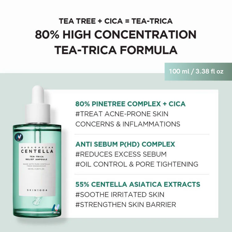 SKIN1004 Tea-Trica Relief Ampoule – 100ml is a soothing face serum made for blemish-prone skin, helping calm visible redness and keep moisture balanced.